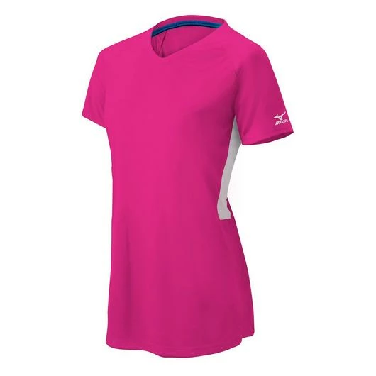 The Mizuno Womens Comp Short Sleeve V-Neck shirt can be worn across all sports and features a lightweight moisture wicking fabric construction.