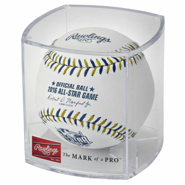 This is the official game ball used in the 2016 All-Star game at Petco Park in San Diego, California. This will be the 3rd time that the Midsummer Classic will be held in San Diego. This baseball bears the commemorative 2016 All-Star logo.