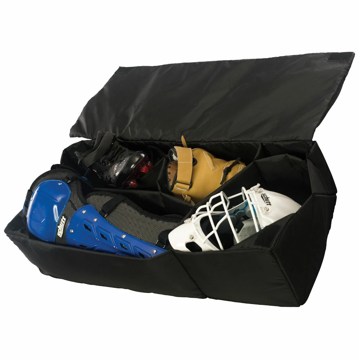 A must have for all catcher’s!! Insert fits perfectly into the Standing Roller Bag. Compartments with sturdy walls seperate your gear. Lid clooses and has three mesh pockets for extra accessories. Removable from bag for easy cleaning. Dimensions 8″ X 32″ X 13″
