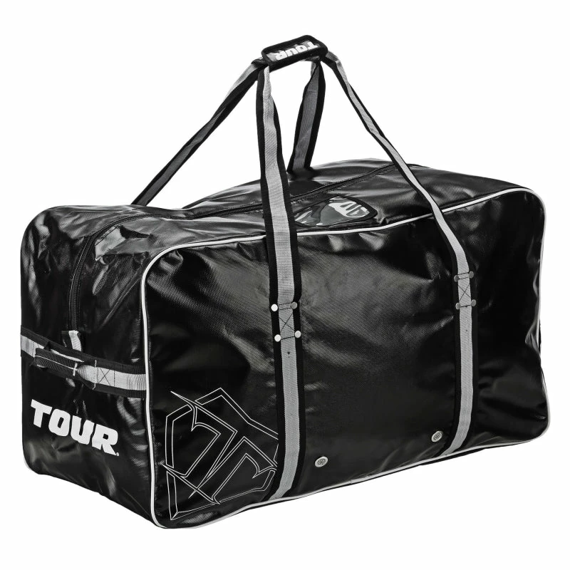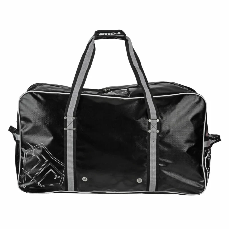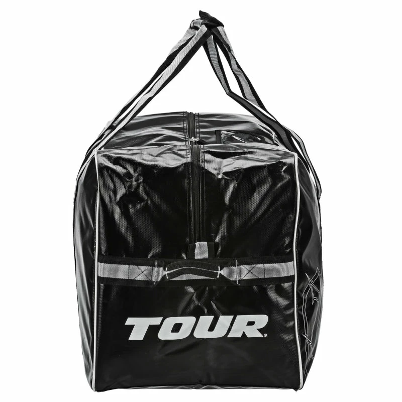 The Tour Team Series Bag is constructed from heavy duty, lightweight, water resistant Tarpaulin material. The bag has a large main compartment and internal zippered stash pocket with multiple venting air grommets for maximum airflow